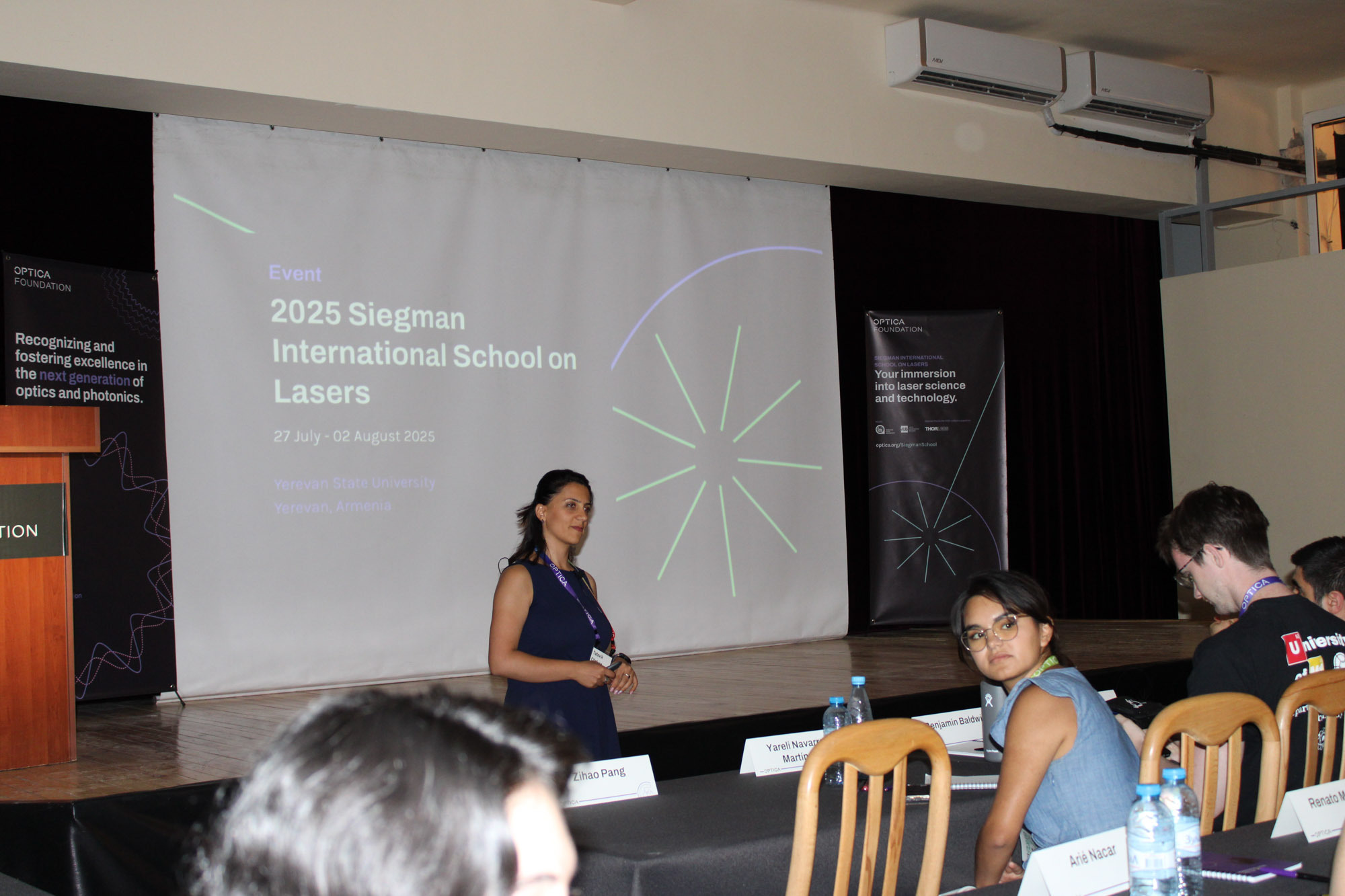 From July 27 to August 2, 2025, Yerevan State University, in collaboration with Vrije Universiteit Brussel, hosted Optica’s annual Siegman International School on Lasers. This year, the school was chaired by Tatevik Chalyan, researcher at Brussels Photonics (B-PHOT) at VUB and Optica Ambassador, Heidi Ottevaere, Head of the Applied Physics and Photonics Department at VUB and Mushegh Rafayelyan, Head of the PhotonicsAI Laboratory at Yerevan State University.